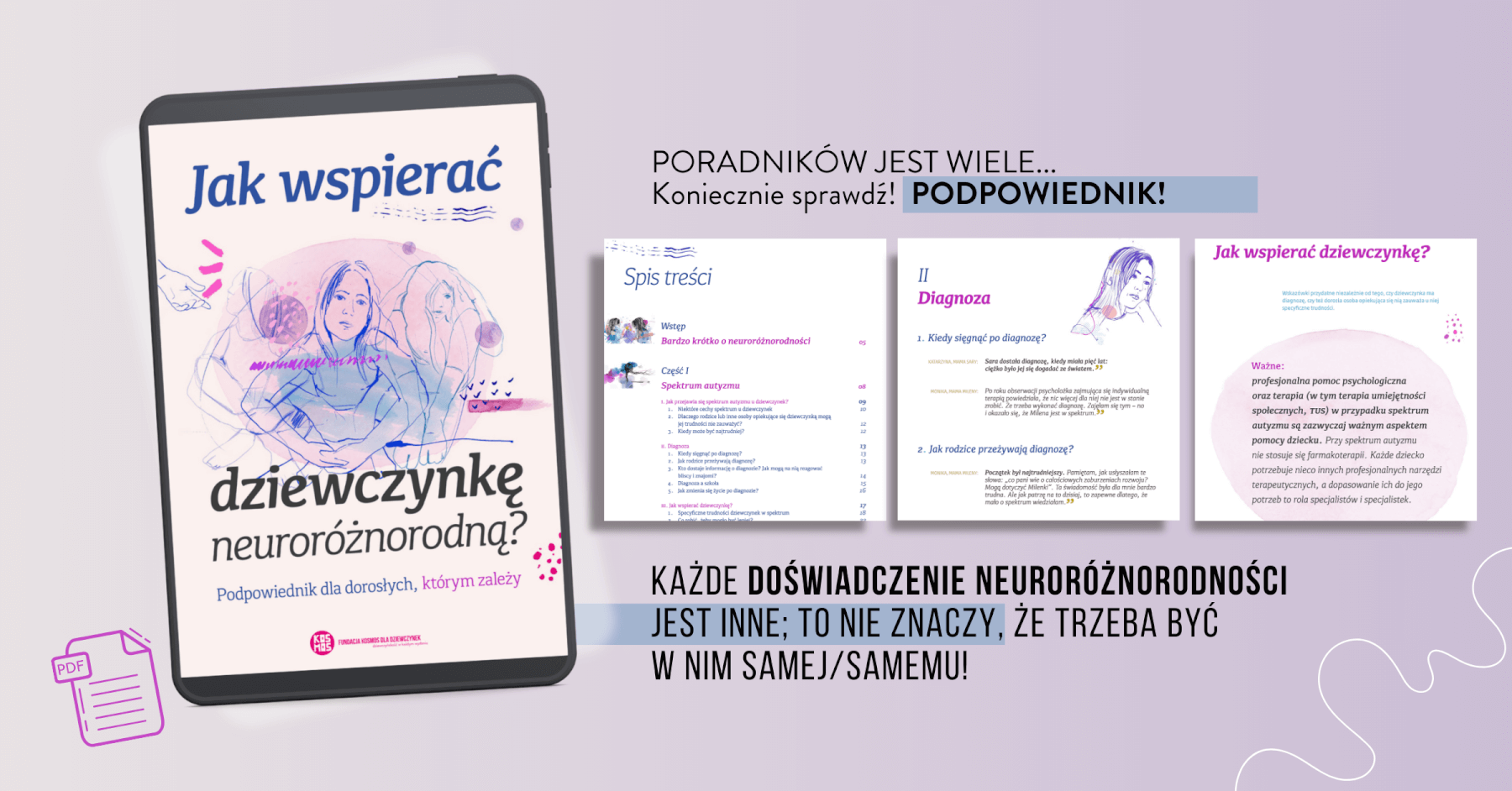 Podpowiednik dla rodziców, osób z rodziny (na przykład babć!), opiekunek, opiekunów, nauczycielek i nauczycieli oraz wszelkich osób, które chcą wspierać dziewczynkę i doświadczają (jej lub własnej!) neuroróżnorodności na co dzień.