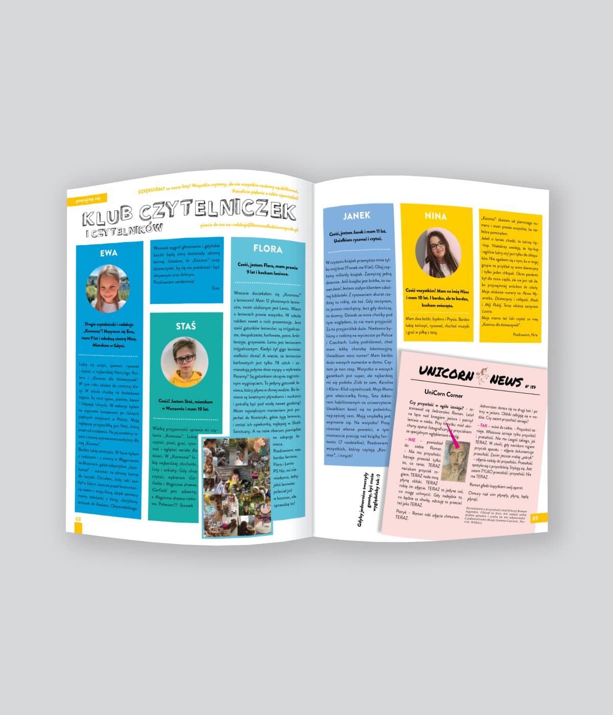 Uwielbiam „Kosmos” za to, że znajduję tam dużo ciekawych artykułów i różne ciekawostki, na przykład o myszojeleniu albo smaku umami. Poza tym czuję, że jako dziewczynka jestem wyjątkowa i mogę osiągnąć wiele!