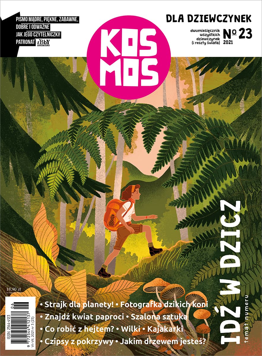 Na stanieA między nimi – pełno frajdy z zanurzenia w przyrodę i spotkania ze swoim dzikim Ja. Fascynująca przygoda z lasem? Wyprawa na kajaki? Fotografowanie mustangów i gepardów? Chrupanie czipsów z liści pokrzywy? „Kosmos” podpowiada, jak zachwycać się światem po miesiącach spędzonych przed ekranem. W numerze też komiks o Dobrawie, olśniewająca planszówka i dział emocje o tym, że dzikie uczucia są ważne. Ruszajmy w dzicz!