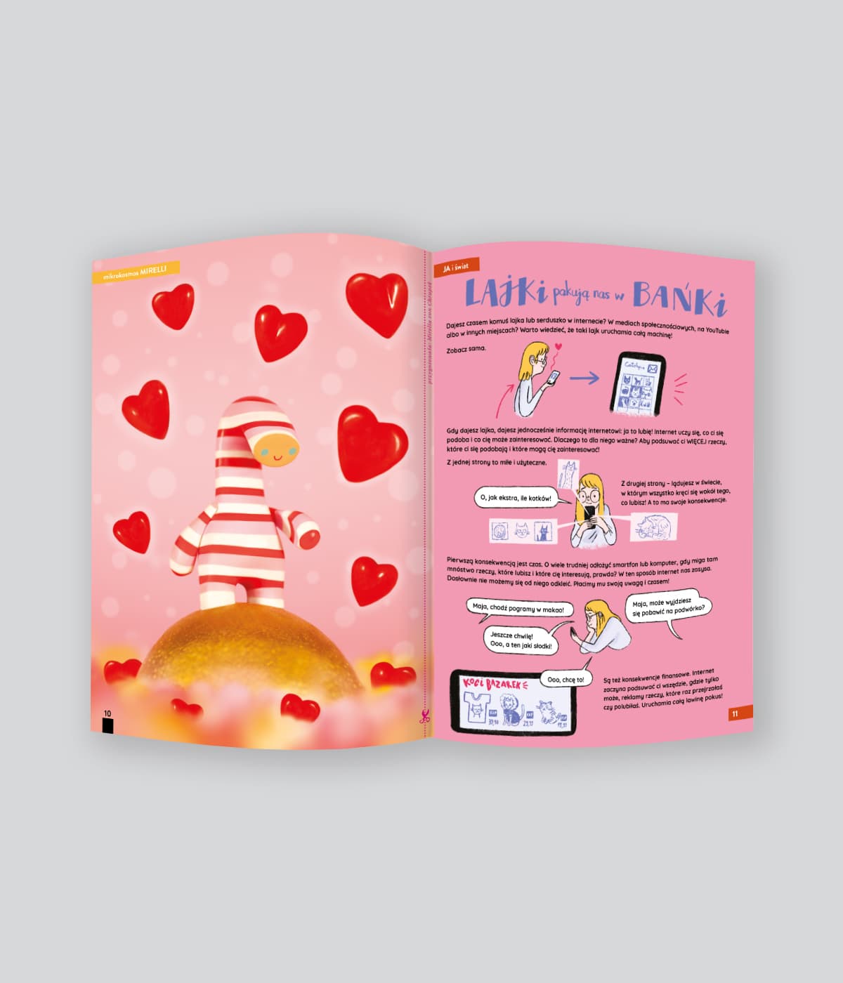 Co dziewczyny i chłopaki myślą o popularności? Co się dzieje w twoim ciele, gdy się zakochujesz? Jaką lawinę zdarzeń może spowodować twój lajk lub serduszko w sieci? A czy można dać komuś lajka w realu? I czy w ogóle wszyscy muszą cię lubić? Odpowiedzi znajdziesz w wiosennym, soczyście kolorowym „Kosmosie dla dziewczynek”. Numerze, który bierze pod lupę emocje i emotki. A oprócz tego przynosi porcję gier, ciekawostek i chichotek – bo to ważne, aby nadal można było się śmiać i bawić!