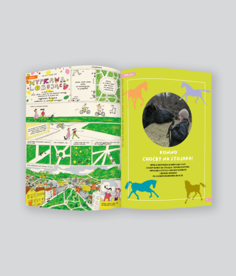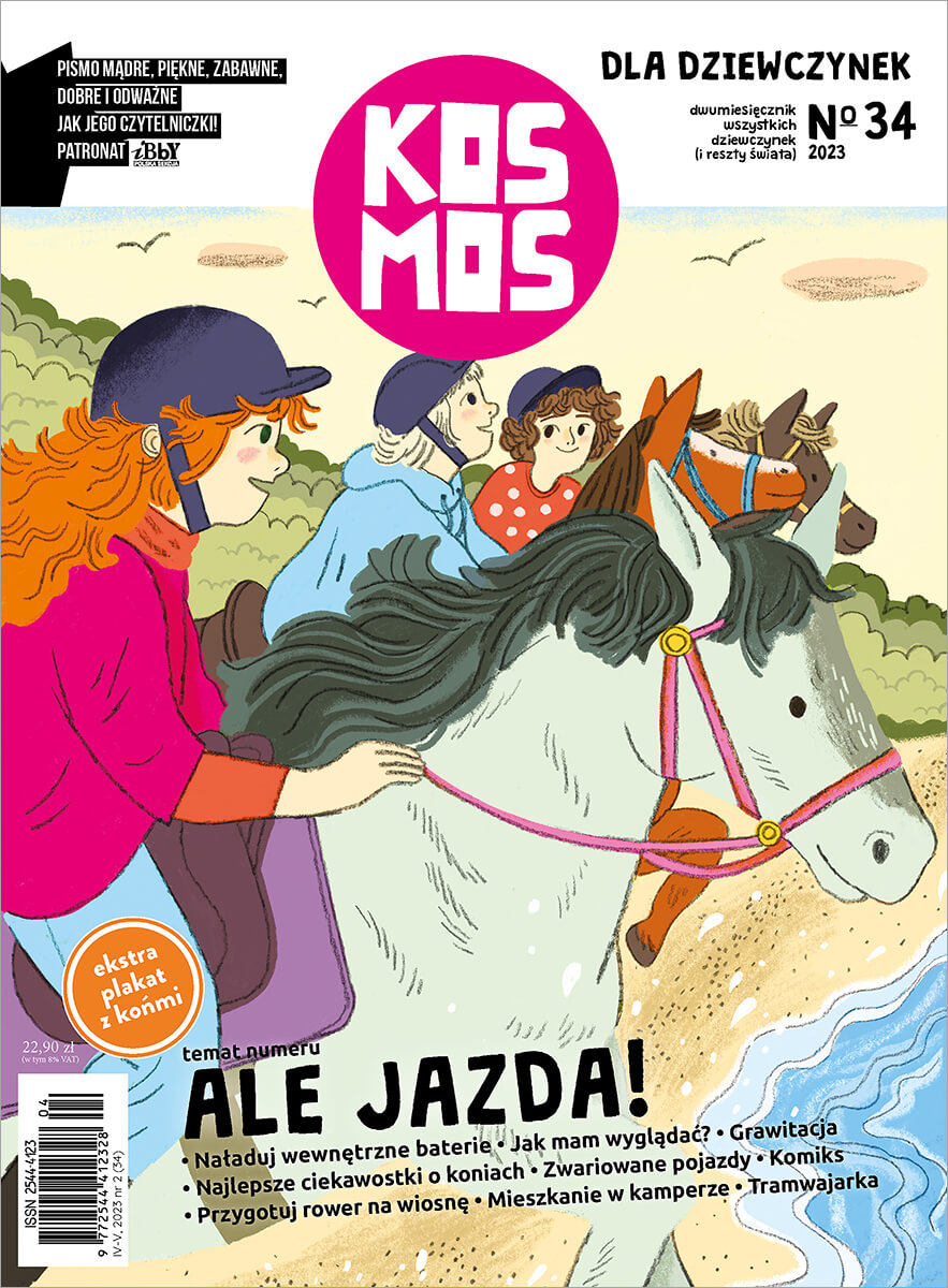 Na stanieALE JAZDA! – ten numer galopuje, mknie, pędzi i śmiga. Można wybrać się z nim w podróż (także w czasie!), poczuć wiatr we włosach i szybsze bicie serca. Wskoczyć na rower, do tramwaju, wsiąść na konia albo zamiast butów włożyć rolki. I krzyknąć: „Ale jazda!” – ze zdziwieniem i zachwytem. Ten numer „Kosmosu dla dziewczynek” podpowiada też, jak ładować wewnętrzne baterie, tropi stereotypy i przygląda się oczekiwaniom dotyczącym wyglądu, z którymi muszą się na co dzień mierzyć dziewczynki.