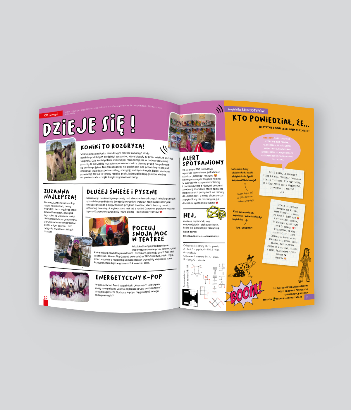 Uwielbiam „Kosmos” za to, że znajduję tam dużo ciekawych artykułów i różne ciekawostki, na przykład o myszojeleniu albo smaku umami. Poza tym czuję, że jako dziewczynka jestem wyjątkowa i mogę osiągnąć wiele!