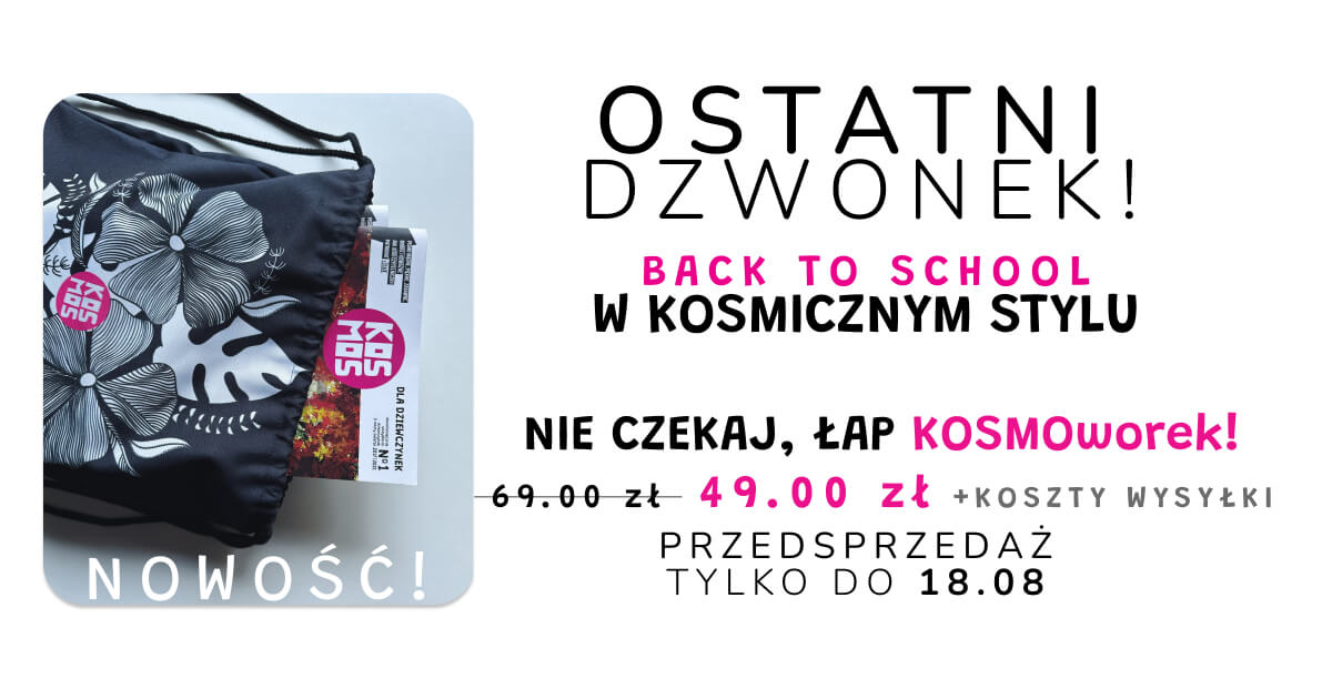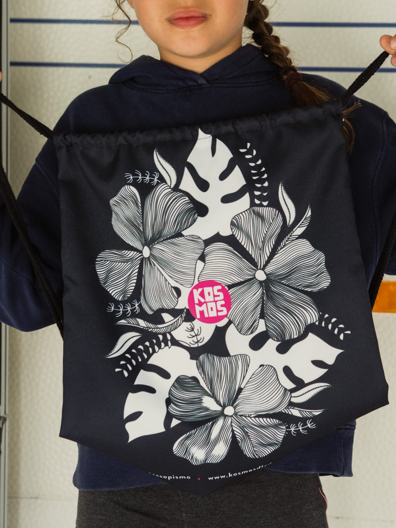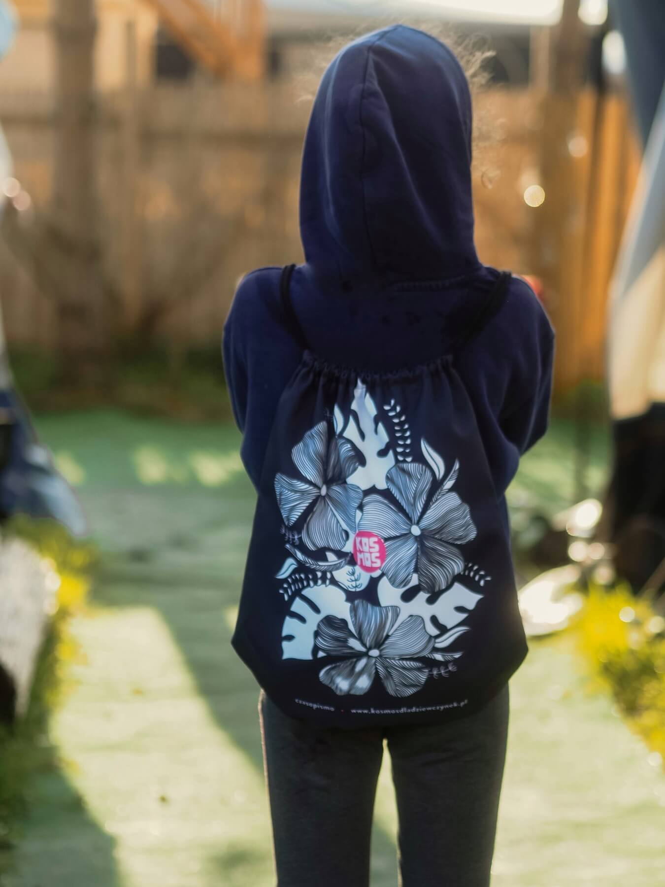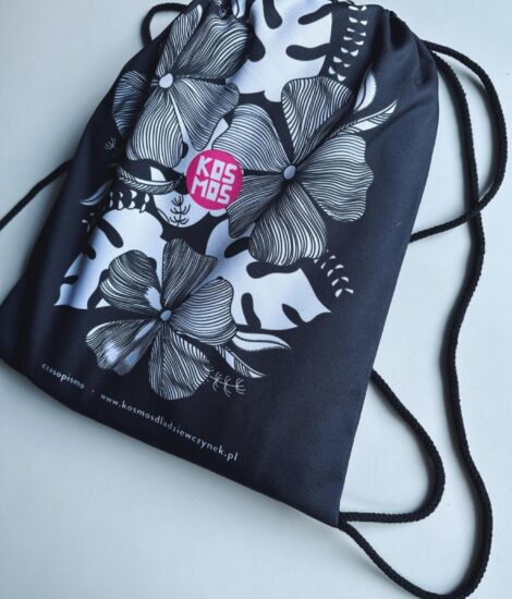 Spraw, by powrót do szkoły był naprawdę kosmiczny! KOSMOworek z łatwością pomieści buty na zmianę – nawet nie jedną parę! Można wrzucić do niego strój sportowy, basenowe akcesoria albo dodatkowe przybory szkolne. Super sprawdzi się na każdej wycieczce (w razie czego można go zwinąć i schować w większym plecaku). Autorski wzór z pewnością spodoba się fankom i fanom “Kosmosu” w każdym wieku.
