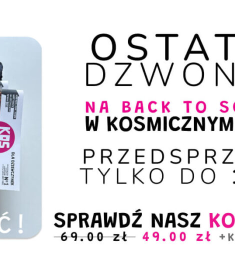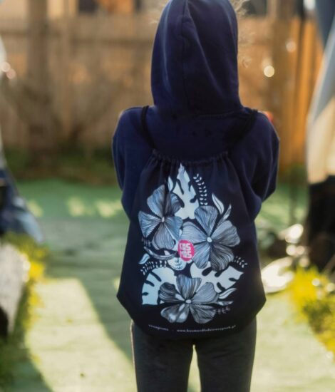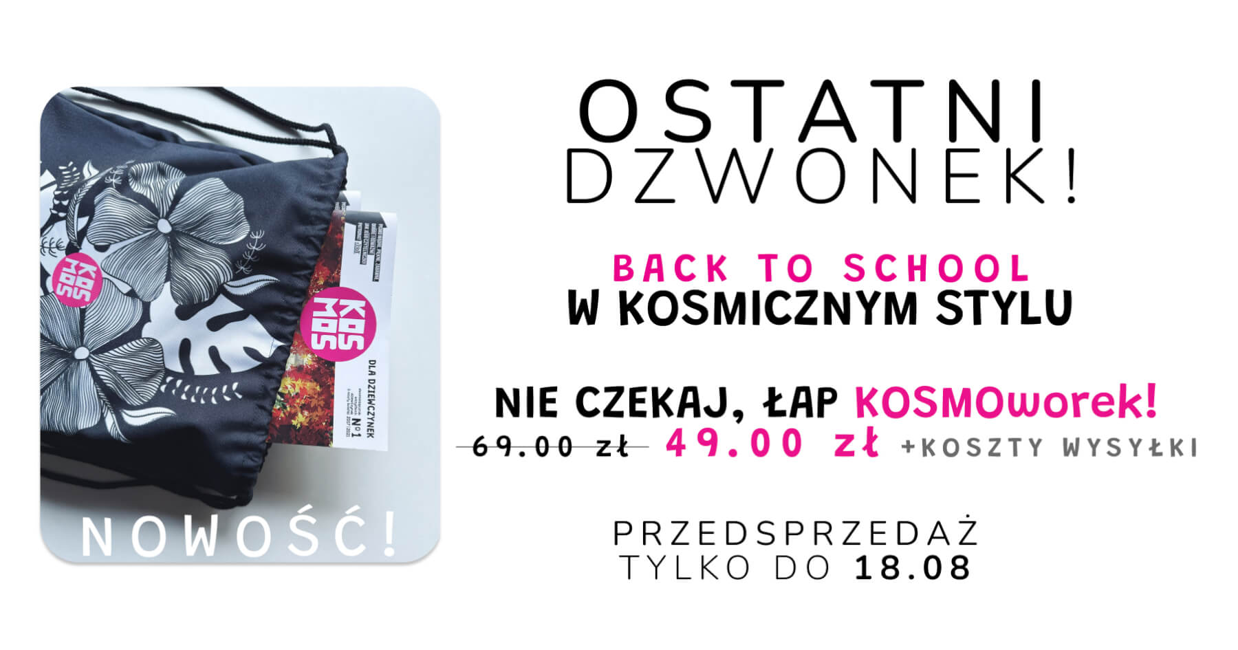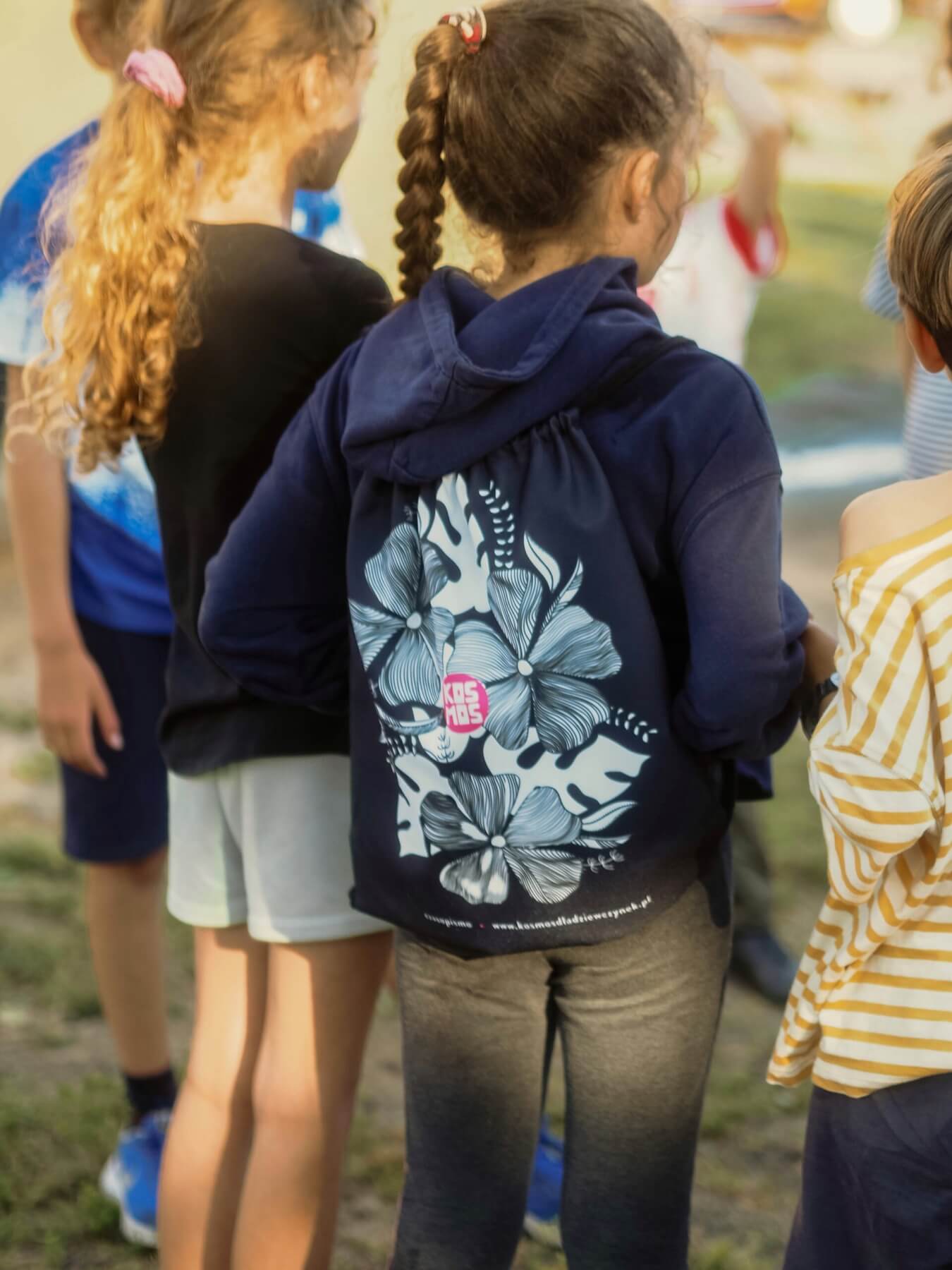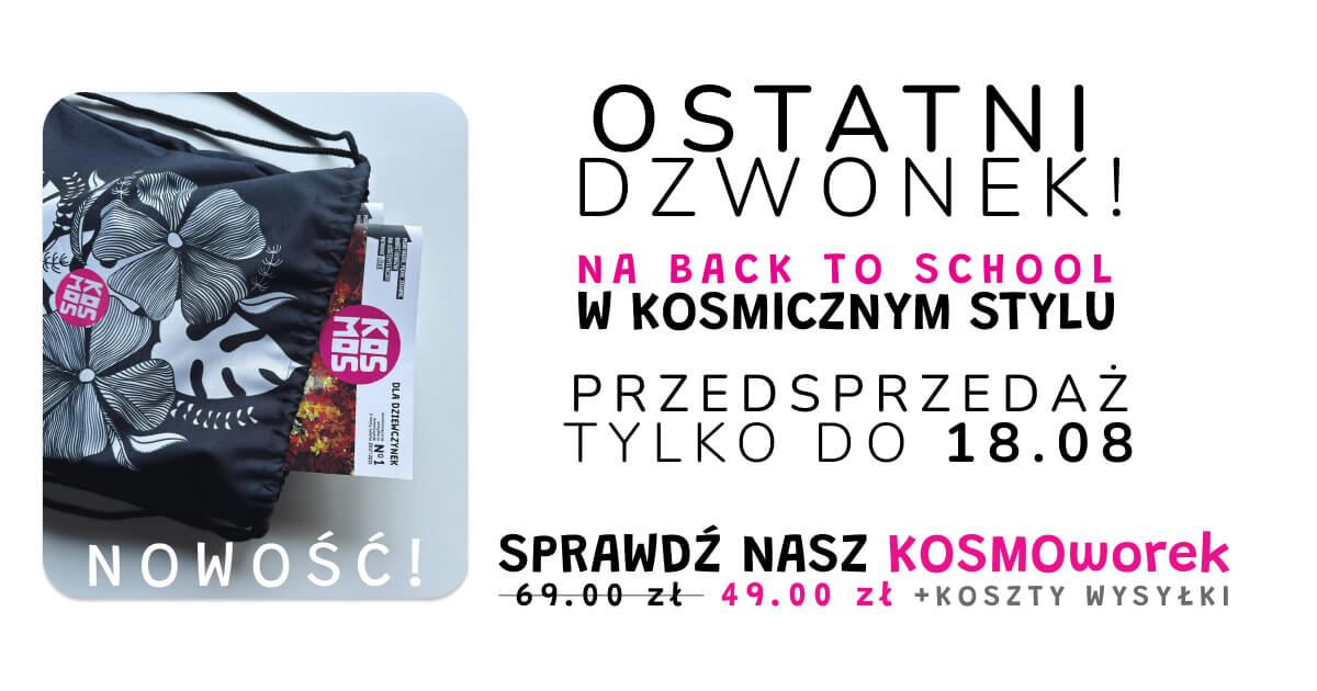 Spraw, by powrót do szkoły był naprawdę kosmiczny! KOSMOworek z łatwością pomieści buty na zmianę – nawet nie jedną parę! Można wrzucić do niego strój sportowy, basenowe akcesoria albo dodatkowe przybory szkolne. Super sprawdzi się na każdej wycieczce (w razie czego można go zwinąć i schować w większym plecaku). Autorski wzór z pewnością spodoba się fankom i fanom “Kosmosu” w każdym wieku.