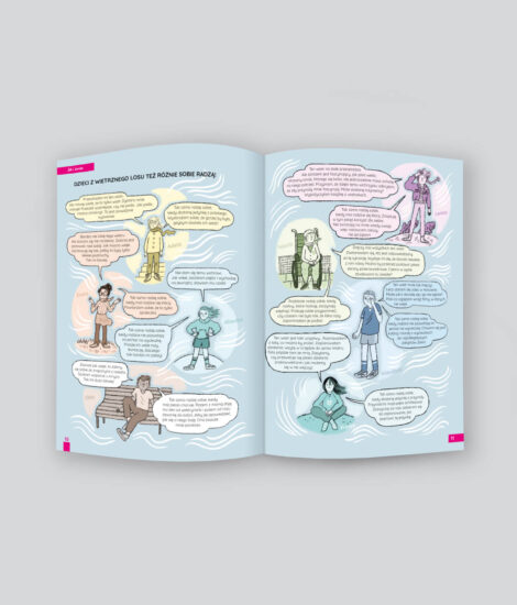 Na stanieWiatr można łapać w żagle, żeby pędzić naprzód. Można skakać przez fale z wiatrem we włosach. Albo puszczać latawce i patrzeć, jak pięknie wirują w powietrzu. Ale przychodzą też takie chwile, gdy wiatr wieje ci prosto w oczy i nie masz siły iść dalej. Dlatego w tym numerze „Kosmosu dla dziewczynek” przeczytasz i o radosnych, i o trudnych momentach. O różnych sposobach na radzenie sobie z problemami, o dobrym byciu razem i dziewczyńskim buncie. Poznasz też wiele niezwykłych dziewczyn! W tym numerze 13-letnia Emilka opowiada o sobie, swoim zdrowieniu i chorowaniu. Aktorka Anna Paliga mówi o pracy w teatrze i filmie, ale też o tym, jak to jest być sygnalistką – czyli ujawnić coś, o czym wiele osób wie, ale milczy. 14-letnia Marta wspomina przeprowadzkę z Polski do Hiszpanii i swoje początki w nieznanym kraju. A 11-letnia żeglarka Natasza wraca do tych chwil, kiedy po prostu musiała działać, bo inaczej wylądowałaby w wodzie! To jak? Wskakujesz z „Kosmosem” na falę?