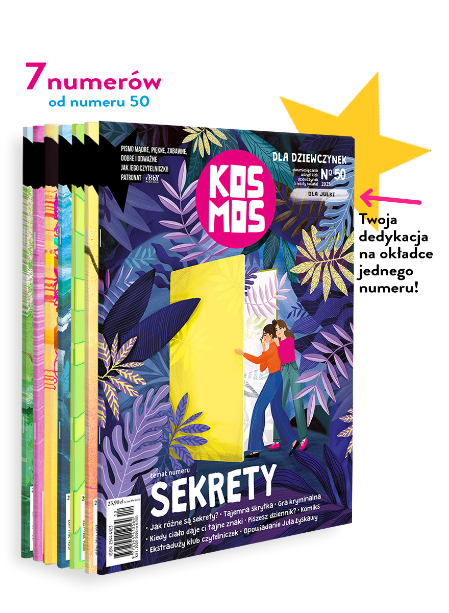 Uwielbiam „Kosmos” za to, że znajduję tam dużo ciekawych artykułów i różne ciekawostki, na przykład o myszojeleniu albo smaku umami. Poza tym czuję, że jako dziewczynka jestem wyjątkowa i mogę osiągnąć wiele!